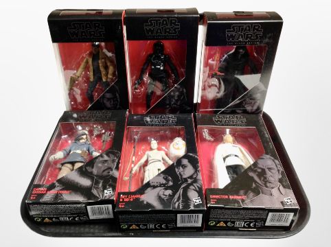 Six Hasbro Disney Star Wars action figures, boxed.