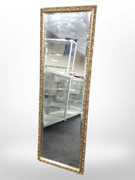A contemporary gilded rectangular mirror, 127cm x 43cm.