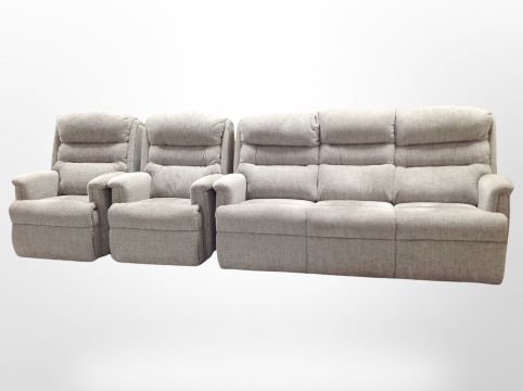A contemporary three piece lounge suite in grey upholstery