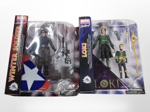Two Diamond Select Toys Marvel figures, Loki and The Winter Soldier, boxed.
