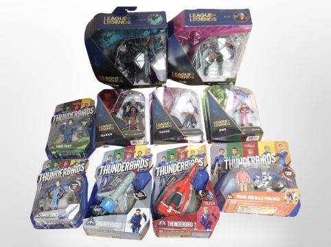 A group of Spin Master League of Legends figures, Thunderbird toys, all boxed.