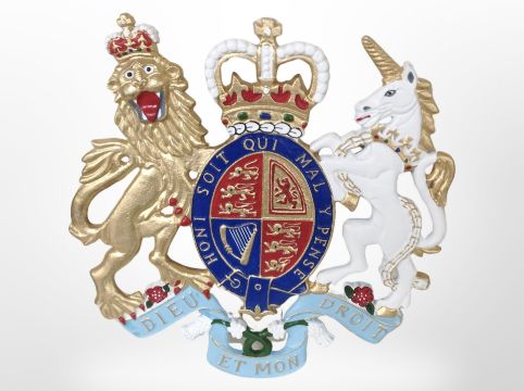A painted cast iron British Royal Coat of Arms, height 51 cm