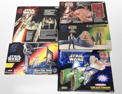 Five boxed Star Wars figures including Hasbro, Kenner etc