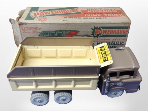 A Marx Toys Powerhouse heavy duty hydraulic scissor action dump truck in original box