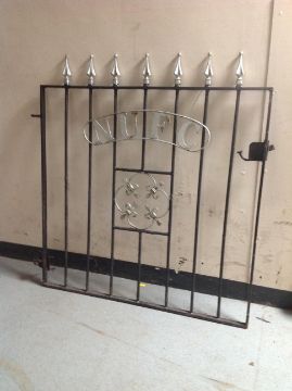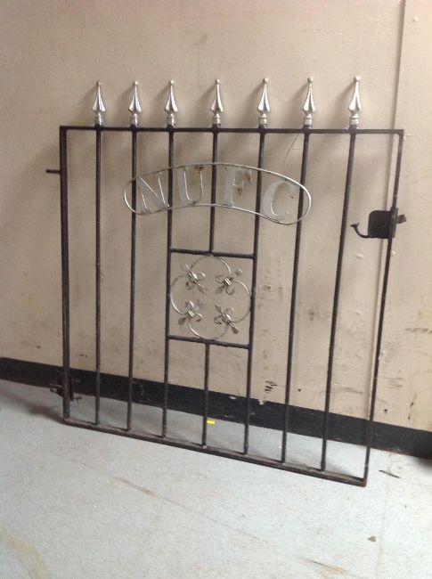 A painted wrought metal "NUFC" gate, 101 cm x 93 cm