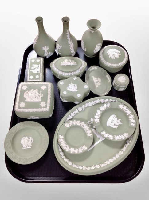 A group of Wedgwood green and white Jasperware.