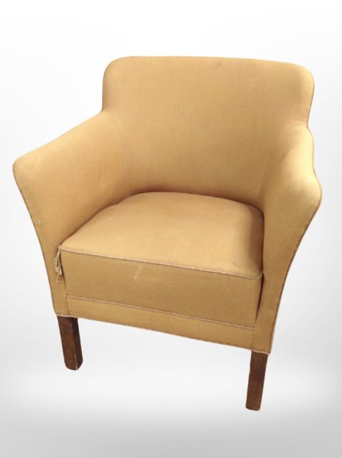 A 20th century armchair in mustard upholstery, width 67 cm