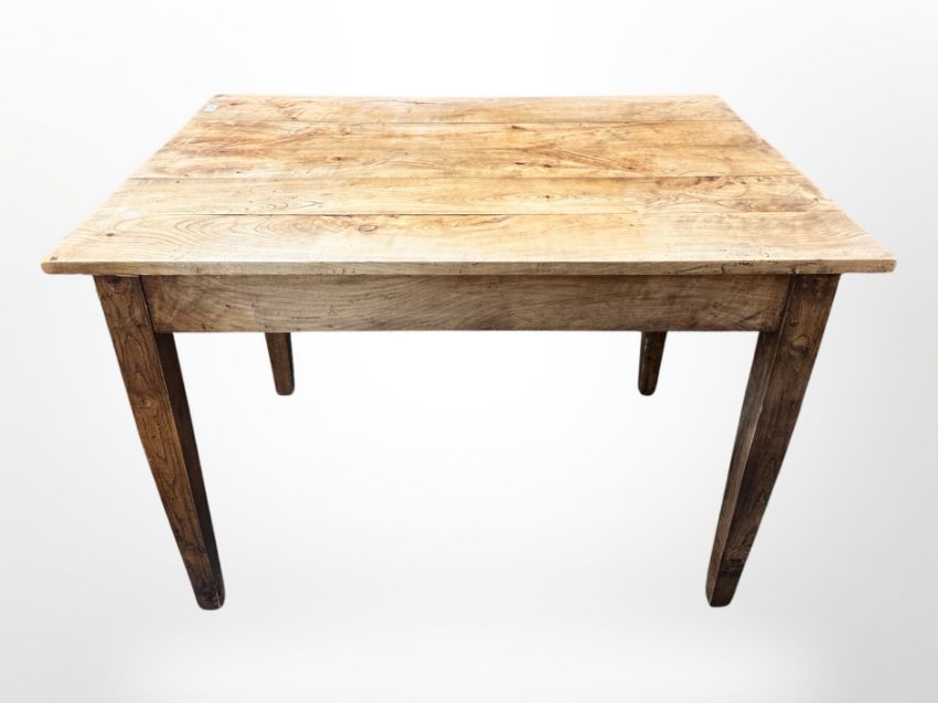 A 19th century French fruitwood kitchen table, 110 cm long x 77 cm wide x 76 cm high