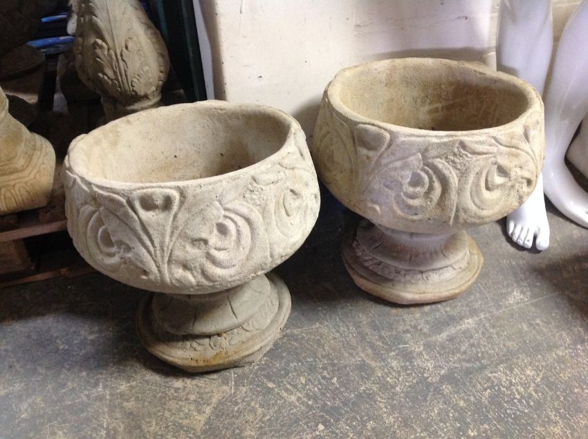 A pair of classical-style concrete garden planters, height 40cm.