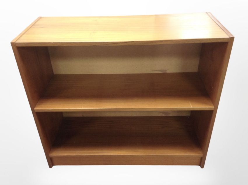 A Danish teak and MDF open low bookcase, 80 cm x 32 cm x 70 cm