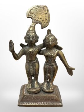 A 19th century Tibetan brass devotional temple statue, height 10cm.