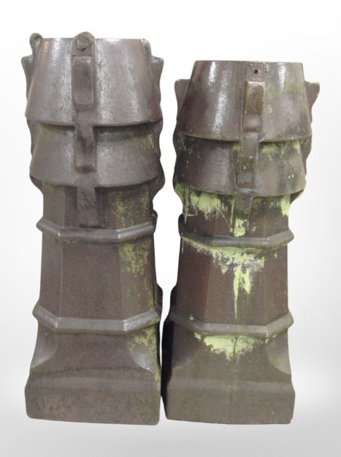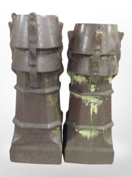 A group of four Victorian terracotta chimney caps, tallest 99cm.