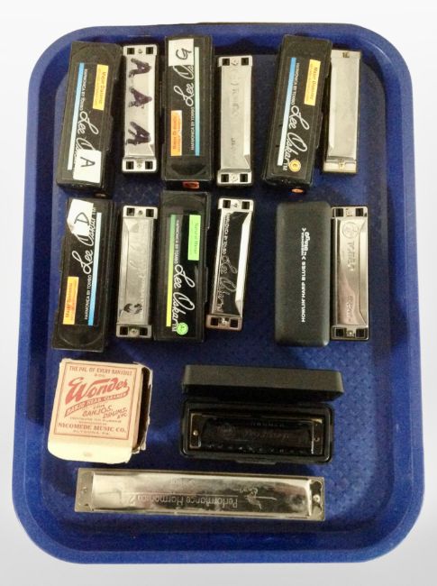 A group of harmonicas including Tombo, Stagg, etc.
