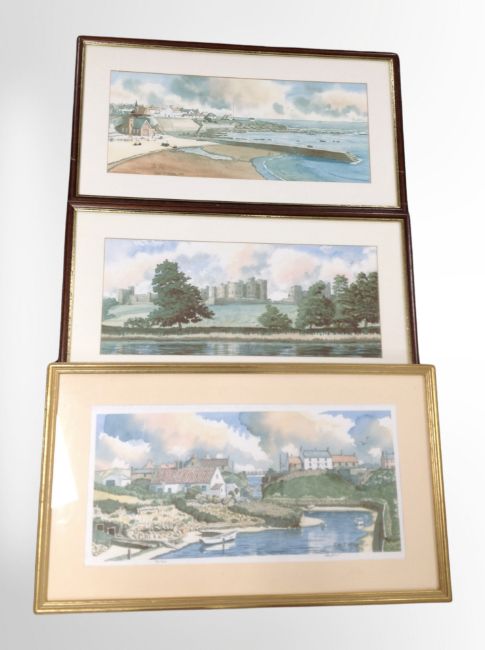 Three signed prints after John Kerr, each 27cm x 55cm.