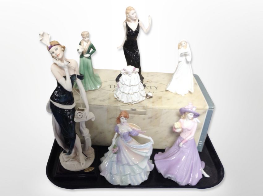 A Guiseppe Armani Florence figure of a lady in box together with several other Royal Doulton, Worcester and Coalport ladies