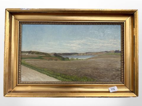 C Bloch : Farmland towards the coast, oil on canvas, 47 cm x 27 cm