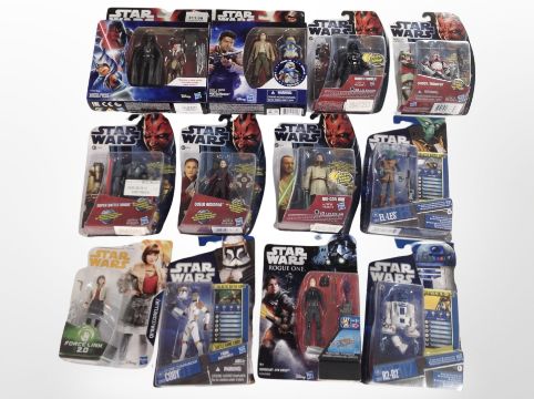 Twelve Hasbro Star Wars figures including The Clone Wars, The Force Awakens etc