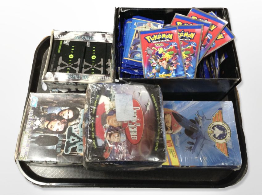 A group of trading cards including Pokemon, Captain Scarlet, The X-Files etc