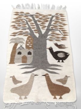 A pictorial Kilim rug depicting stylized birds beneath a tree, 140 cm x 80 cm