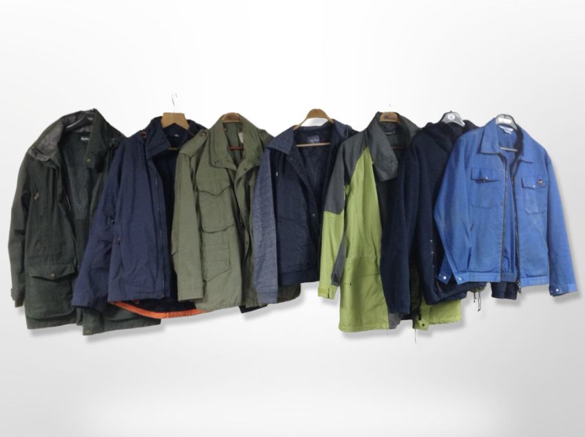 A group of gent's outdoor coats and jackets including Reefer, Brook Taverner, Waverley, North by North, etc.