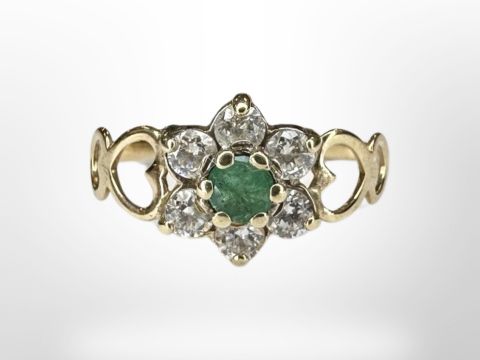 A 9ct yellow gold emerald and cubic zirconia dress ring