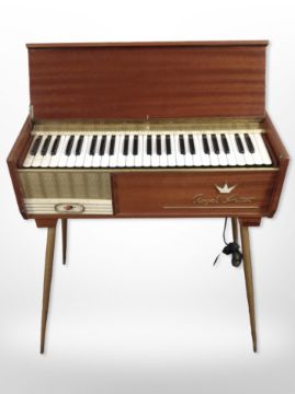 A vintage Royal Artist teak-cased piano accordion on tapered legs, Made in Italy, width 63cm.