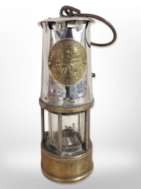 A chrome Eccles Type 6RS miner's safety lamp.
