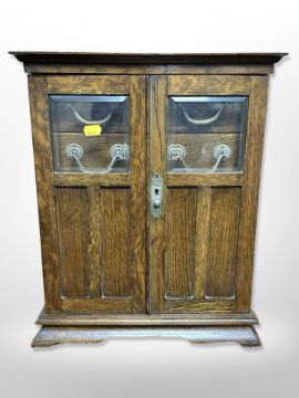 A late Victorian oak smoker's cabinet, 37 cm x 22 cm x 44 cm