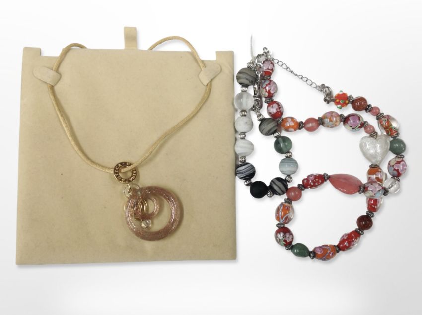 An Antika Murrina Italian necklace, a Murano handmade glass bead necklace, and a further bracelet.