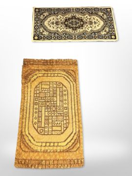 A machine-made Persian style rug, 118 cm x 60 cm, and a 1970's rug on orange ground (2)