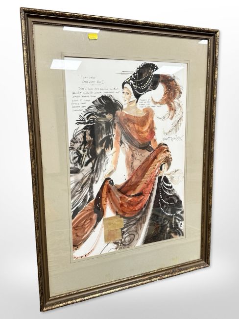 John Hogarth ARCA : Swan Lake, Court Lady, Act I, watercolour and pen, 55 cm x 36 cm