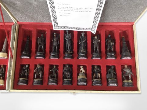 Two Lord of the Rings chess sets, one representing the forces of the West, the other representing Sauron, each in fitted case.