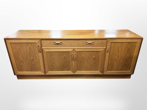 A G Plan teak wall unit base, 185 cm x 45 cm x 72 cm