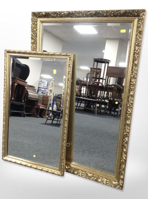 Two contemporary gilt-framed mirrors, largest 96cm x 65cm.