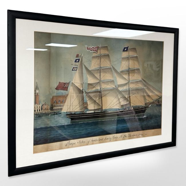 Circle of Joseph Honoré Maxime Pellegrin (Italian, 1763-1869) The Barque 'Sisters' of Sunderland Leaving Venice, Mr. Thomas Thompson Owner, 1871, watercolour, 39cm by 52cm. *Provenance: Mr. Thomas Thompson of Sunderland, owner of the barques Choice, Hope and Sisters. Thence by descent.