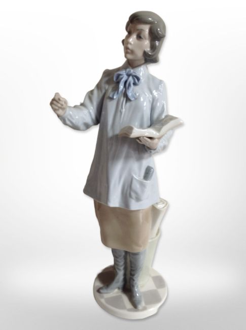 A Lladró figure of a cobbler, and a further figure of a lady reading from a book. (both as found)
