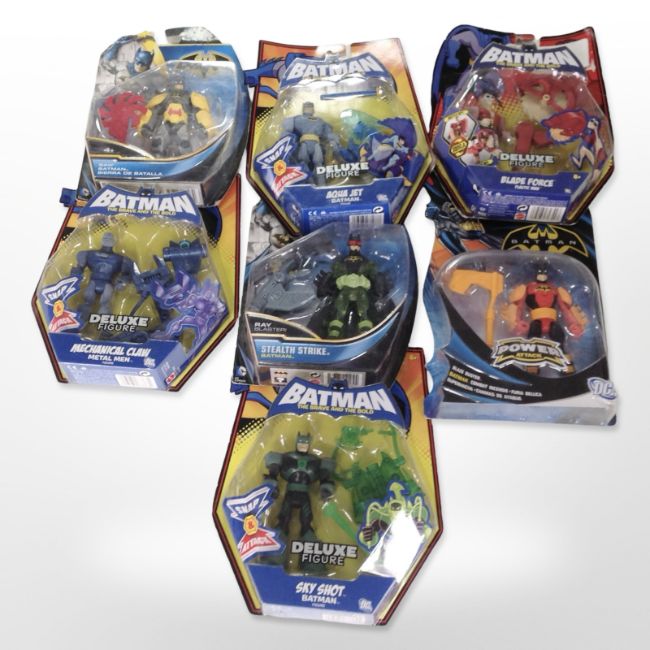 Seven DC Batman figurines, boxed.
