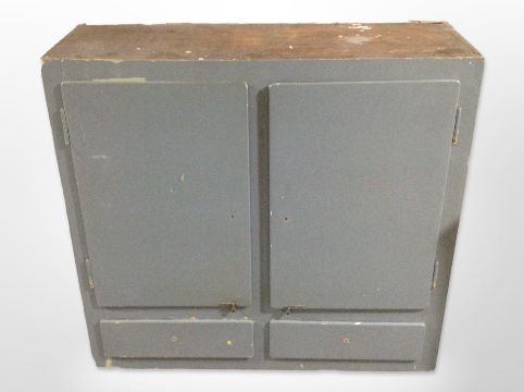 An early 20th century painted pine tool cupboard, 97 cm wide x 30 cm deep x 93 cm high