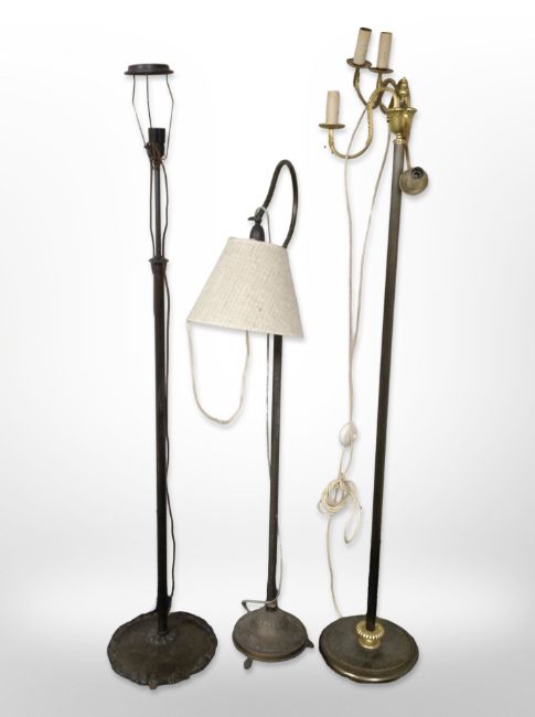 Three Continental patinated metal standard lamps