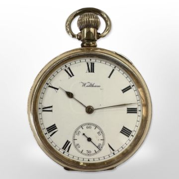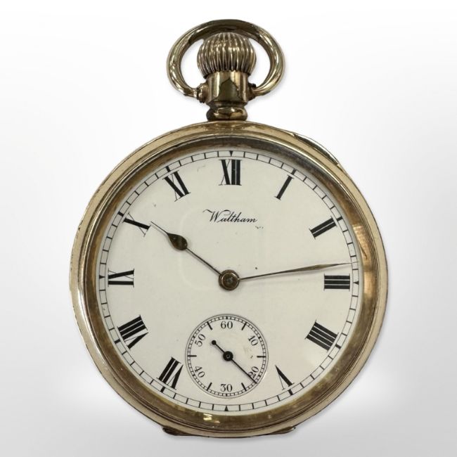 An American Waltham USA Traveller gold plated pocket watch, movement number 19,752,381
