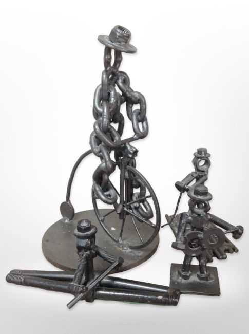 A group of contemporary metal sculptures, tallest 25 cm