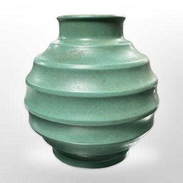 A Keith Murray for Wedgwood green-glazed ribbed bulbous vase, height 15.5cm.