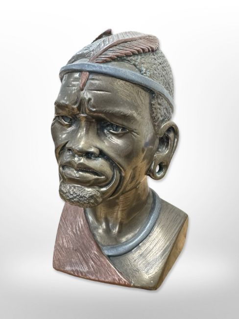 A cold-cast bronze bust of an African man by Casper Darare, number 339/400, height 14cm