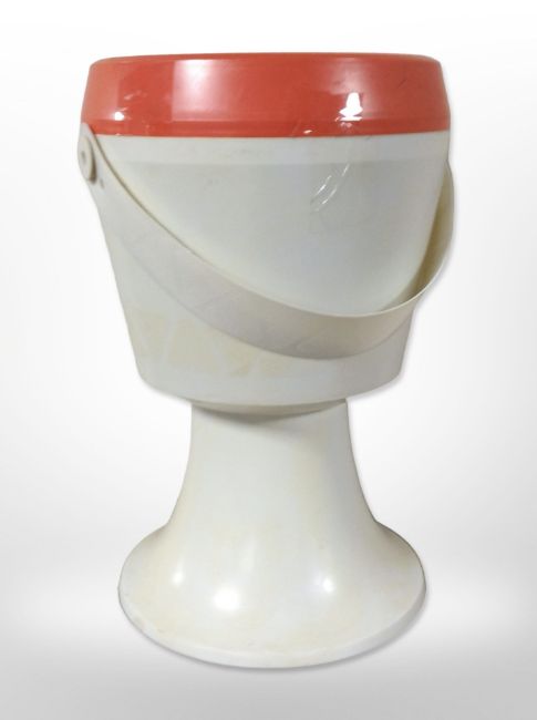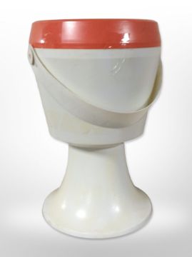 A 1970's Flair plastic sewing box/stool with swing handle, height 43 cm