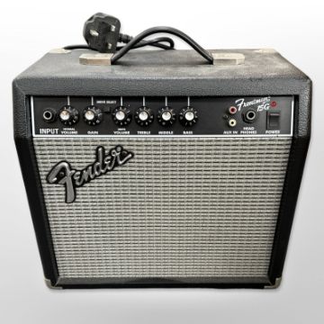 A Squire by Fender electric strat guitar, in fitted Rockcase, together with a Fender Frontman 15G amplifier.
