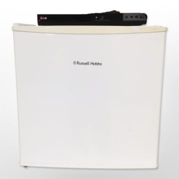 A Russell Hobbs bench top freezer and an LG DVD/CD player with lead and remote