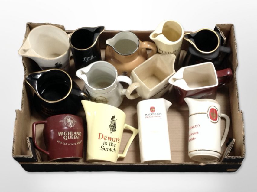A collection of ceramic whisky jugs bearing various advertising. (1 box)