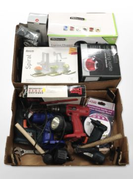 A group of power tools, home kitchen electricals, hand tools. (2 boxes)
