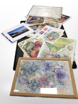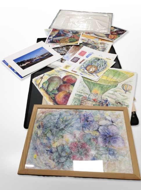 An artists folio containing a large quantity of mainly unframed watercolours and oil paintings, still-life studies, etc.