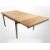 A 20th-century teak pull-out extending rectangular dining table on tapered legs, 175cm long x 94cm wide x 73cm high (unextended), together with a set of six teak-framed dining chairs with cream vinyl seats.